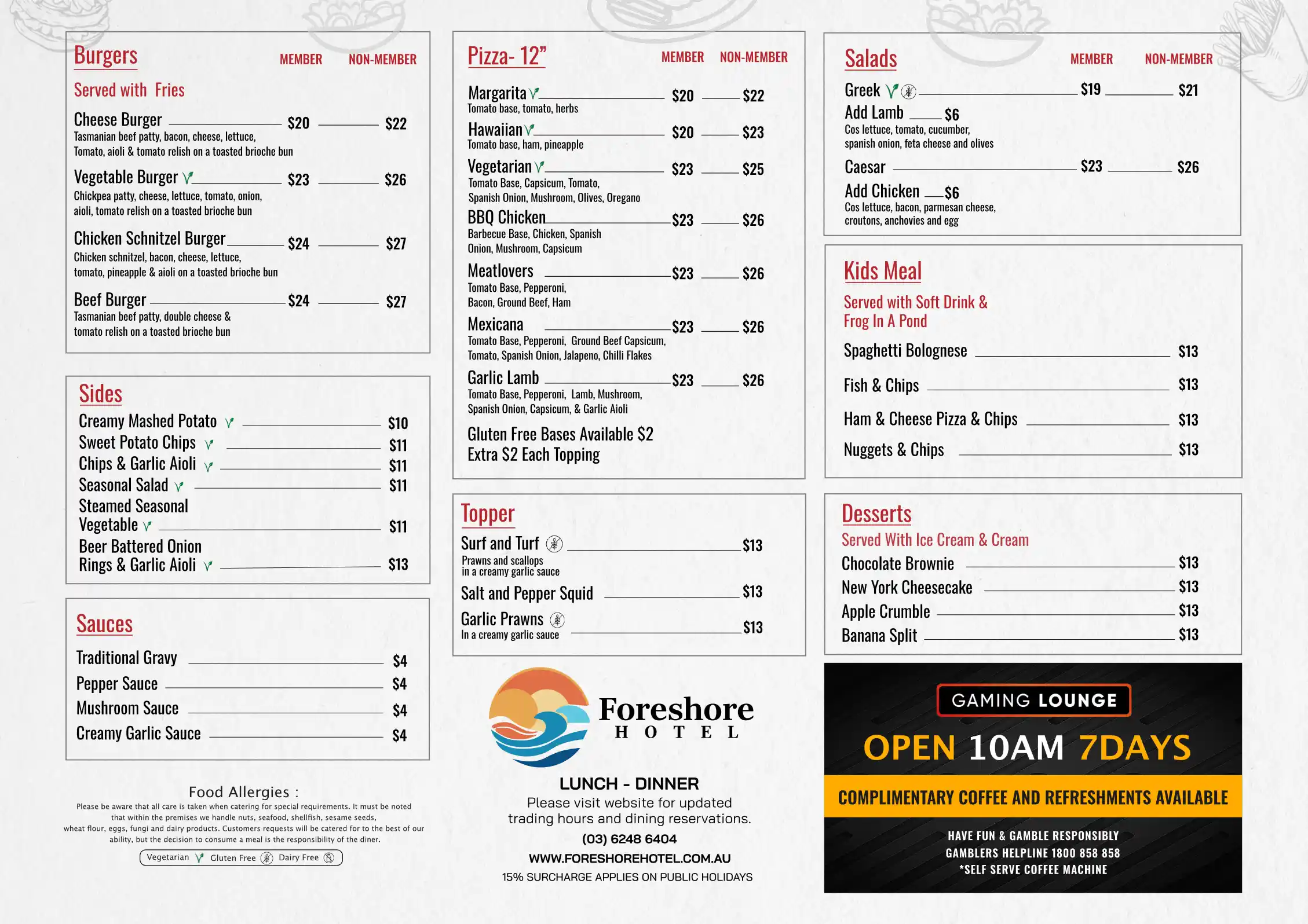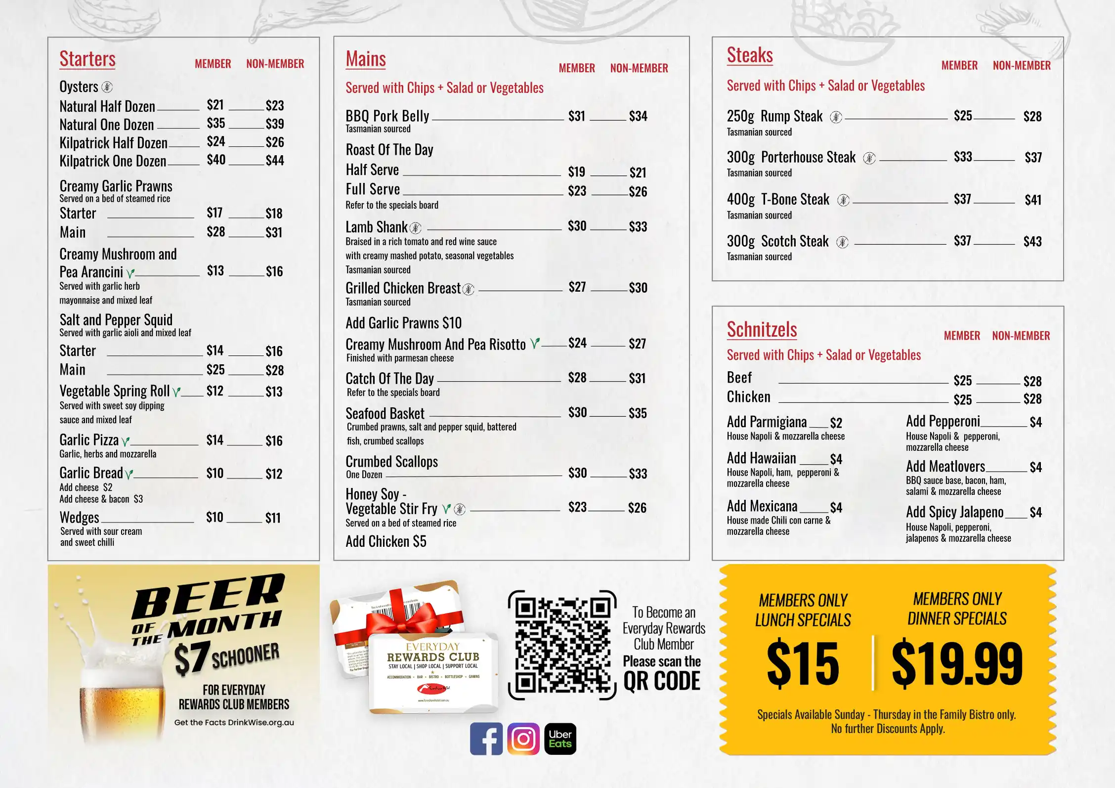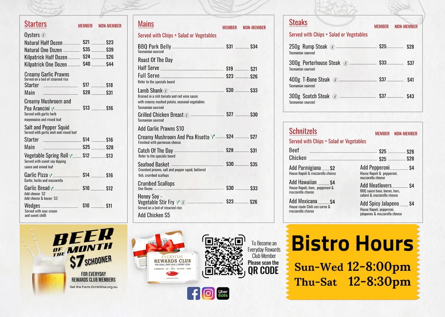 Good food, great value — that’s the idea behind our Bistro Specials, available Sunday to Thursday at the Foreshore Hotel Family Bistro.