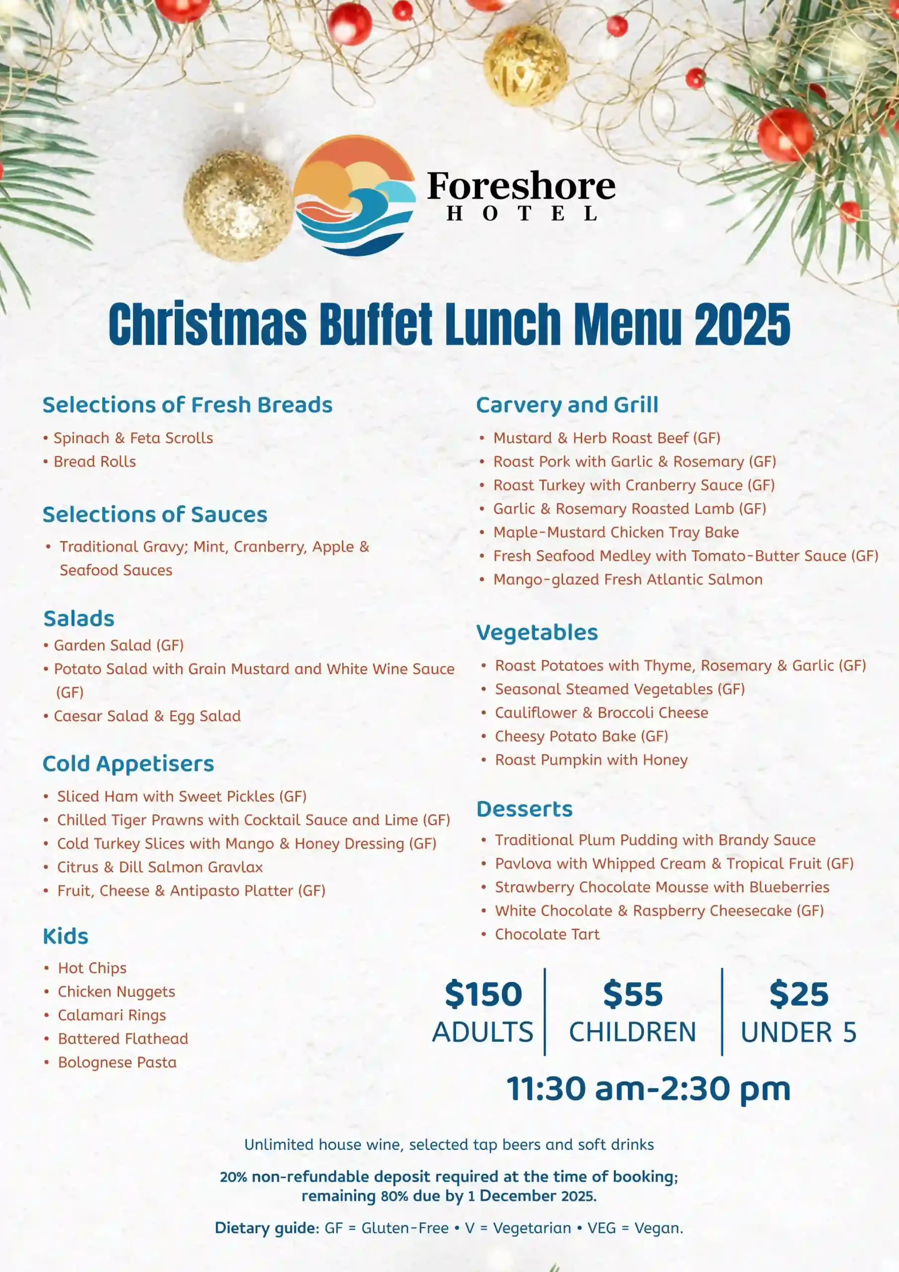And of course, Christmas Day Lunch is always a sell-out favourite — book early to avoid missing out.